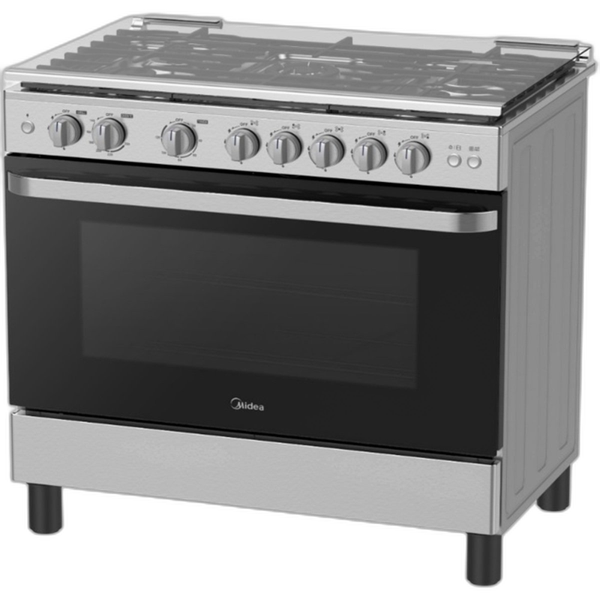 Midea Gas Cooker 90×60 - 5 Burners - Full Safety - Silver - Fan - Drops