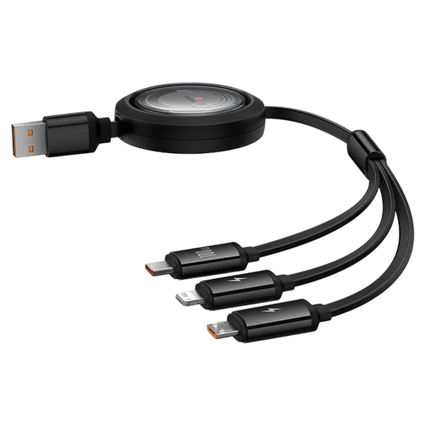 Fast charging 3-in-1 USB-A to Micro USB, Lightning & USB‑C cable that extends upto 1.1 m Data transfer & sync speed upto 480Mbps Color: Cluster Black