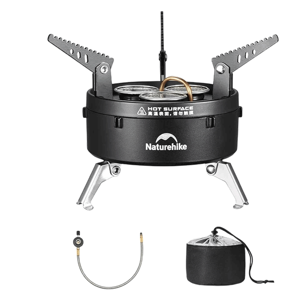 A powerful gas stove with triple burners, designed for fast and stable outdoor cooking