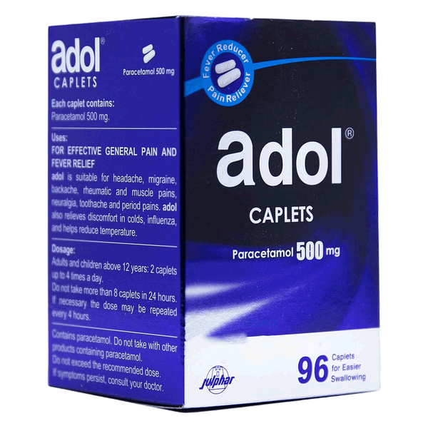 Caplets for pain relief and fever reduction, suitable for adults and children over a specific age - 96 Tablets