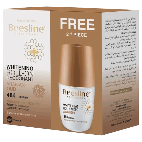 A roll-on deodorant with Arabian Oud scent that prevents body odor for up to 48 hours and lightening the underarm area - 2 x 50 ml