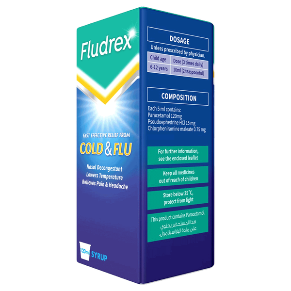 A syrup used to relieve symptoms of cold and flu, including congestion, fever, and sore throat - 120 ml
