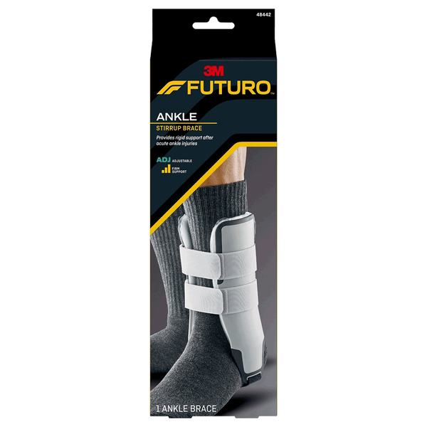 An adjustable ankle brace with a stirrup design that provides firm support and stability for weak, injured, or unstable ankles