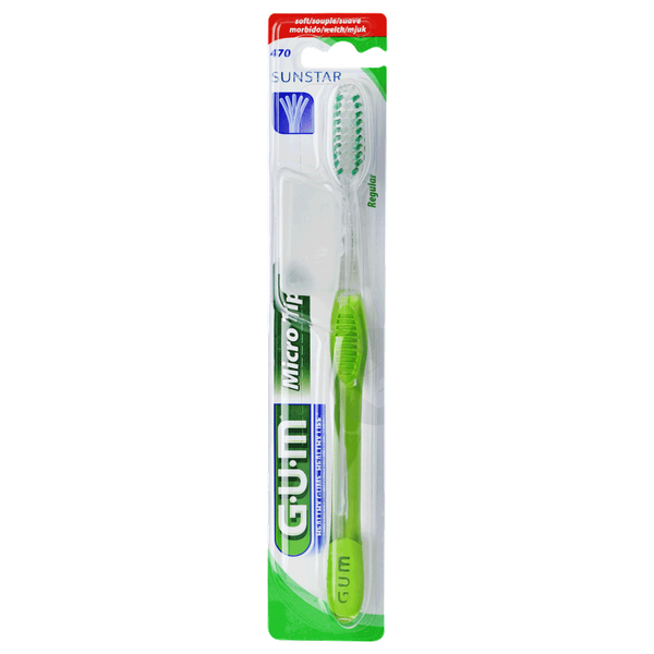 Medium-bristled toothbrush with a micro-tip for precise cleaning. Effectively cleans teeth while remaining gentle on gums