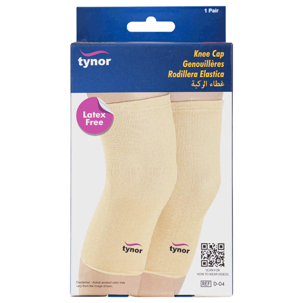A pair of knee cap supports designed to provide compression and support to relieve knee pain - Large