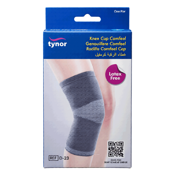 A pair of knee cap supports designed to provide compression and support to relieve knee pain - Large
