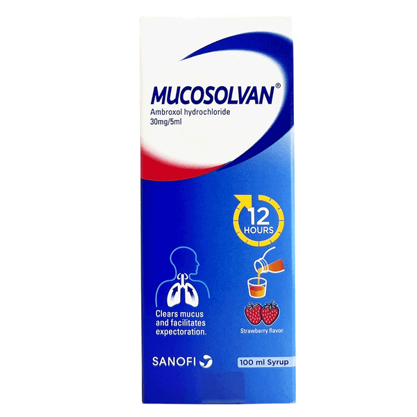 Medication containing 30 mg of ambroxol hydrochloride per 5 ml. It is used to relieve cough and facilitate mucus clearance in respiratory conditions by thinning and loosening mucus in the airways - 100 ml