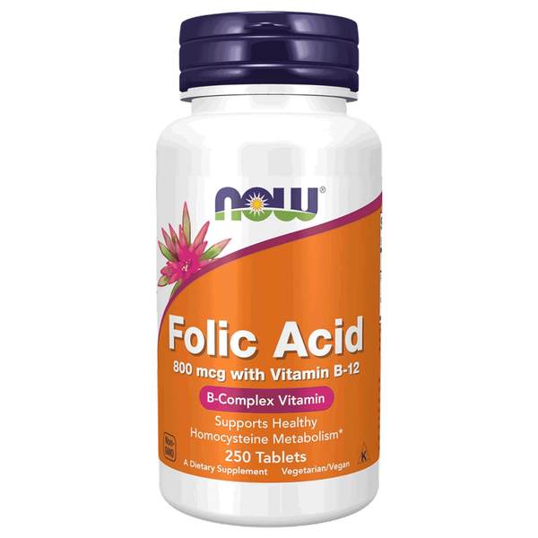 Dietary supplement providing 800 mcg folic acid and 25 mcg vitamin B12 to support overall health, red blood cell formation, and nutritional needs during pregnancy - 250 Tablets