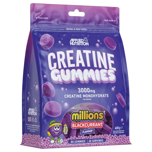 Chewable creatine monohydrate gummies with black currant millions flavour convenient, tasty way to power up strength and training performance - 80 Gummies