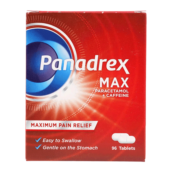 An analgesic and antipyretic used to relieve mild to moderate pain such as headaches, toothaches, muscle pain, and menstrual pain. It contains paracetamol and caffeine to enhance pain relief effectiveness - 96 Tablets