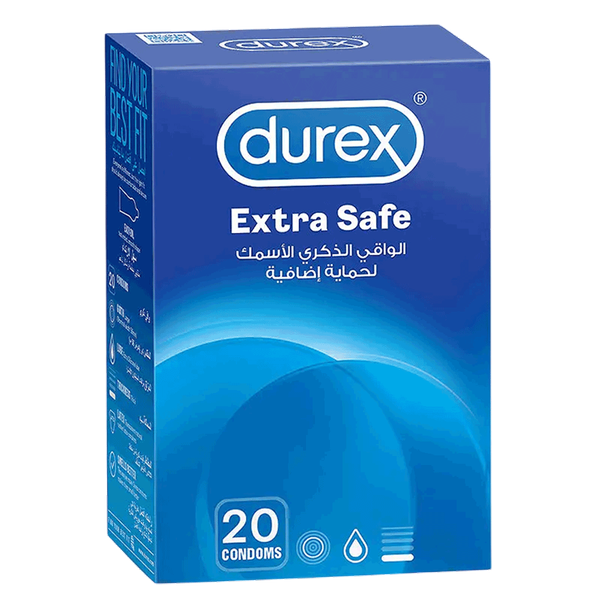 Durex Extra Safe condoms are made from latex a natural transparent rubber designed for a high level of security and protection, with a nominal width of 56 mm - 20 Pcs