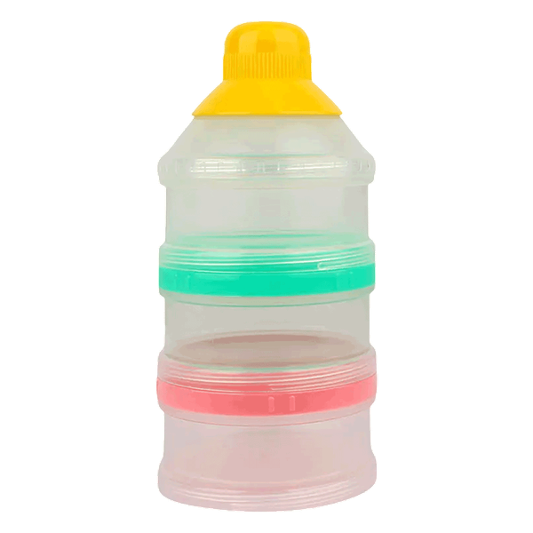 A compact, travel-friendly container with stackable, sealable compartments for storing pre-measured baby formula or snacks, perfect for on-the-go use