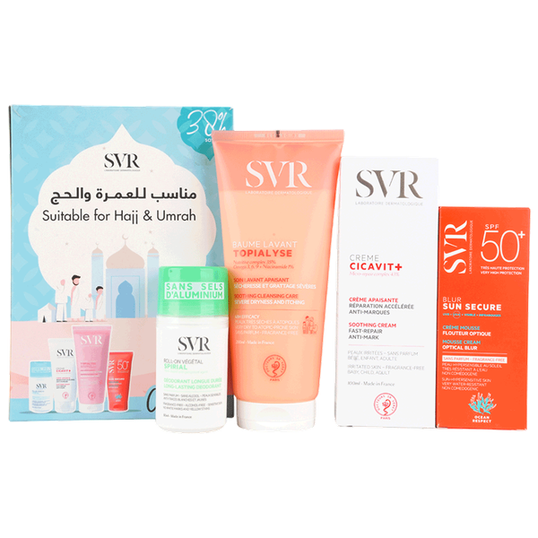 A comprehensive set designed for skincare during Hajj and Umrah, containing multiple products for effective cleansing, hydration, and protection from the sun and environmental factors