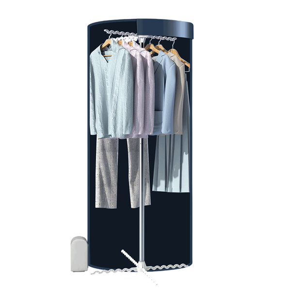 Portable Vertical Foldable Clothes Dryer features a powerful 1000W PTC heating system with 360° hot air circulation, constant 60C drying temperature, heat-resistant waterproof fabric cover, 4 timer modes (1/2/4/6 hours), strong vertical rack supporting up to 12 kg, compact foldable design, and includes stainless steel pipes, support frames, cloth cover, and dryer unit for efficient indoor drying - 1000W