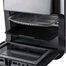 Features powerful 1800W heating with 360° hot air circulation, large 12L capacity, digital touchscreen presets, temperature control from 80C-200C, rotisserie function, up to 80% less oil cooking, and includes crisper trays, drip tray, rotisserie shaft with forks, fetch tool, and optional mesh basket for frying, roasting, baking, grilling, and dehydrating - 1800W