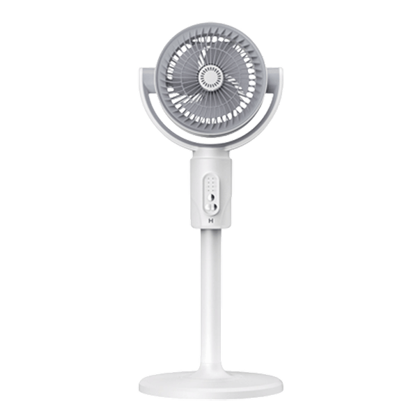 Ultra-quiet rechargeable desktop and floor fan featuring 5 speed levels, adjustable height, oscillation, remote control, 8-hour timer, and convenient Type-C charging for flexible cooling anywhere - 10W