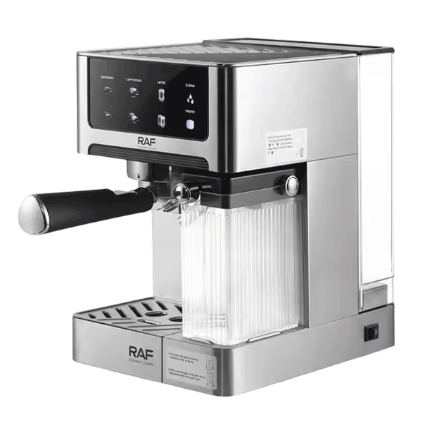 Automatic coffee machine with espresso, cappuccino, latte functions, milk frother, and stainless-steel body for rich café-style drinks at home - 1350W