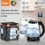 A stylish 1500W electric kettle with a 1.8L capacity, featuring a BPA-free borosilicate glass body, concealed heating element, and a 360° cordless swivel base for fast, safe boiling and easy everyday use - 1.8 L
