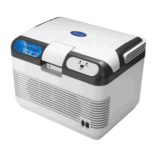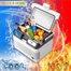 A compact portable refrigerator with dual cooling and heating modes, designed for car, home, office, and outdoor use, featuring DC/AC dual power support, low-noise energy-efficient operation, and a built-in carry handle to keep food and drinks cool (10-20C below ambient) or warm (60-65C) wherever you go - 12 L
