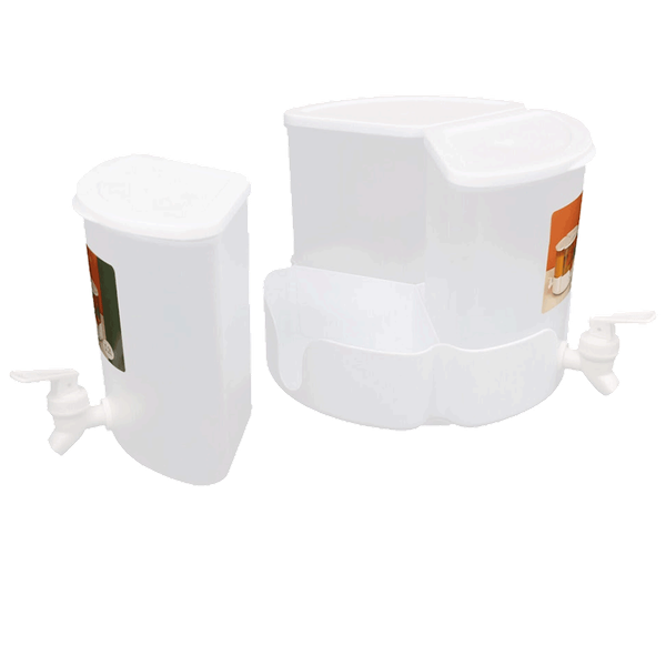 Made of food-grade PP material, it's safe, durable, with three separate compartments, 360° rotating base, silicone-sealed faucets, and portable handle - 5.2 L