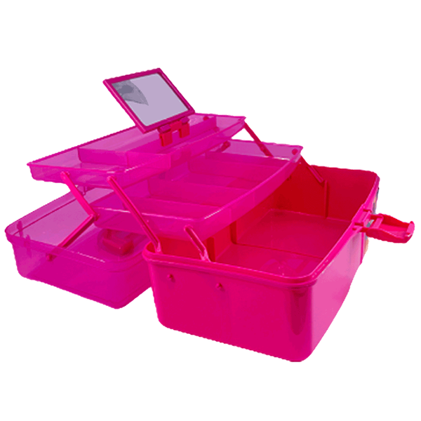 Features a durable high-quality plastic build, lightweight and easy-to-carry design, three-layer storage for safe organization, smart open-and-show structure, and built-in mirror for quick self-care - 40 × 19 × 16 cm
