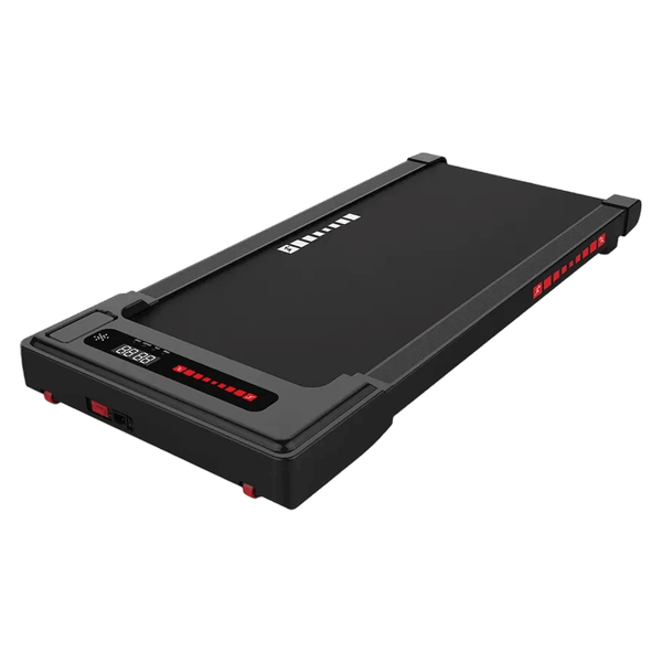 Slim under-desk walking pad powered by a 2.5HP motor, equipped with LED display, smooth speed control, shock-absorbing deck, and portable design, ideal for walking while working at home or office. Adjustable speeds from 1 to 12 KM/H