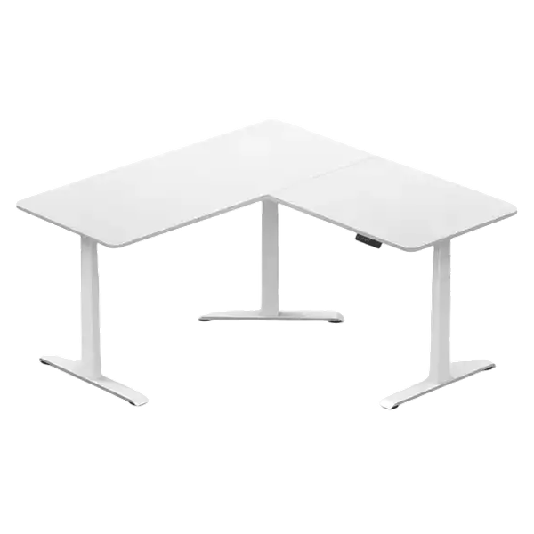 Electric height-adjustable L-shaped desk with 3-leg ergonomic design, offering a spacious work surface, smooth motorized lift, and strong metal frame for sitting and standing work - 1000 x 1750 mm