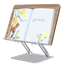 Lightweight ergonomic stand made of durable acrylic, designed to support books and laptops with adjustable angles and easy portability.