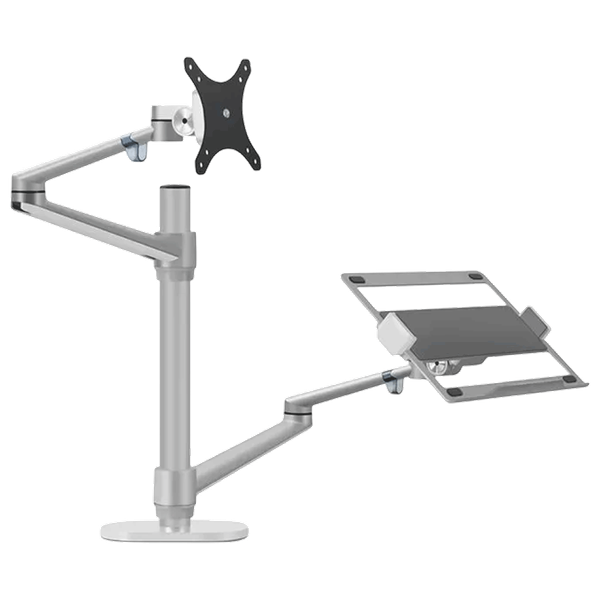 Aluminum arm supporting both monitor and laptop, offering smooth adjustment, modern design, and reliable load capacity - 17–27 inch