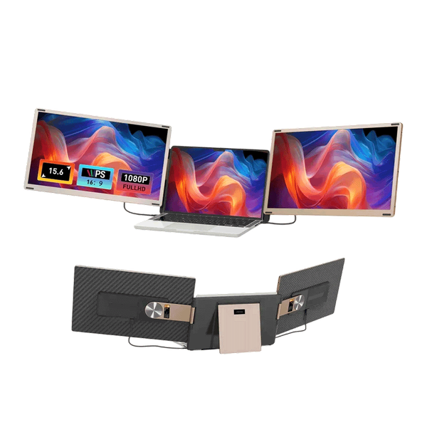Advanced triple screen extender providing expanded workspace, seamless connectivity, and portable design for professionals.