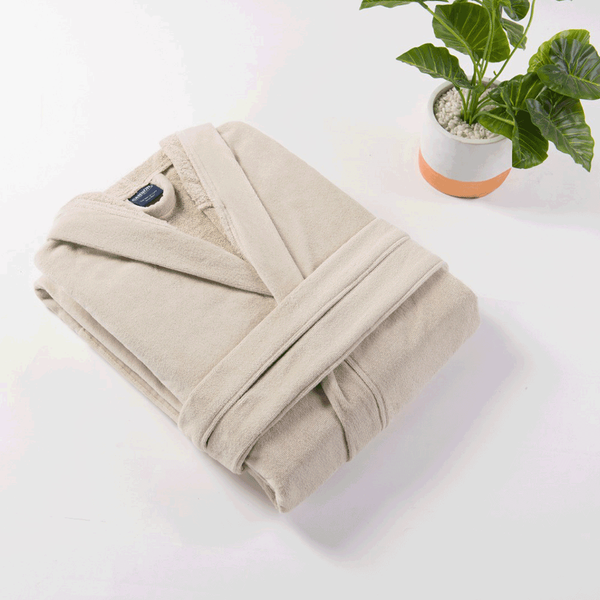 Cannon Large Solid Maxi Bathrobe with Hood - Beige - Drops