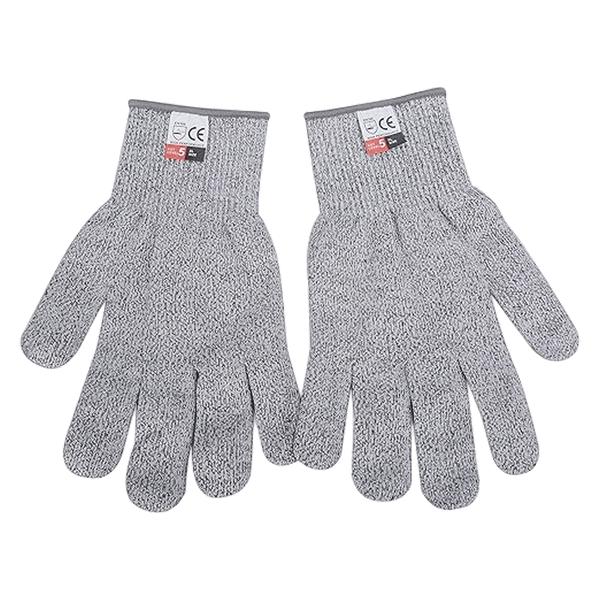 Cut-resistant safety gloves made from cross-woven material with an ambidextrous design. Machine washable, they’re ideal for kitchen tasks, wood carving, meat cutting, and general multi-use protection