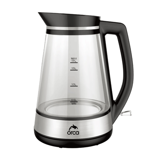 Glass electric kettle with 1.7 L capacity and 360° rotating base, delivering 1850-2200W of power for fast boiling, featuring manual opening lid, dry boil protection, and automatic shut-off for safe and convenient daily use - 1.7 L