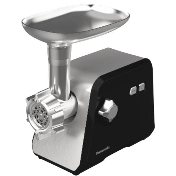 High-performance 2000W meat grinder featuring a Japanese-made blade, large metal tray with four attachments, durable silver and black design, easy operation and efficient grinding performance - 2000W